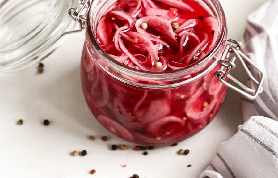 Marynowana czerwona cebula na szybko to prosty i szybki sposób na przygotowanie aromatycznej i kwaśnej przystawki. Cebulę kroimy w cienkie piórka, a następnie marynujemy w occie, cukrze i soli. Po krótkim czasie marynowania, cebula nabiera intensywnego smaku i świetnie komponuje się z różnymi potrawami, szczególnie z grillowanym mięsem czy sałatkami. Gotowe danie można przechowywać w lodówce przez kilka dni.