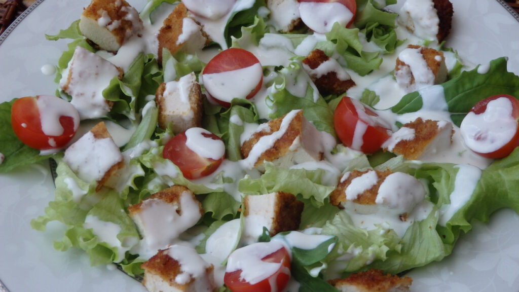 Sałatka z kurczakiem i sosem czosnkowym to idealne danie na letni obiad. Połączenie soczystego kurczaka z chrupiącą sałatą i aromatycznym sosem czosnkowym sprawia, że danie to doskonale nadaje się na lekką i smaczną potrawę. Dodatek świeżych warzyw, orzechów lub sera feta sprawi, że sałatka będzie jeszcze bardziej pożywna i kolorowa. Prosty w przygotowaniu, zachwyci wszystkich miłośników smaków!