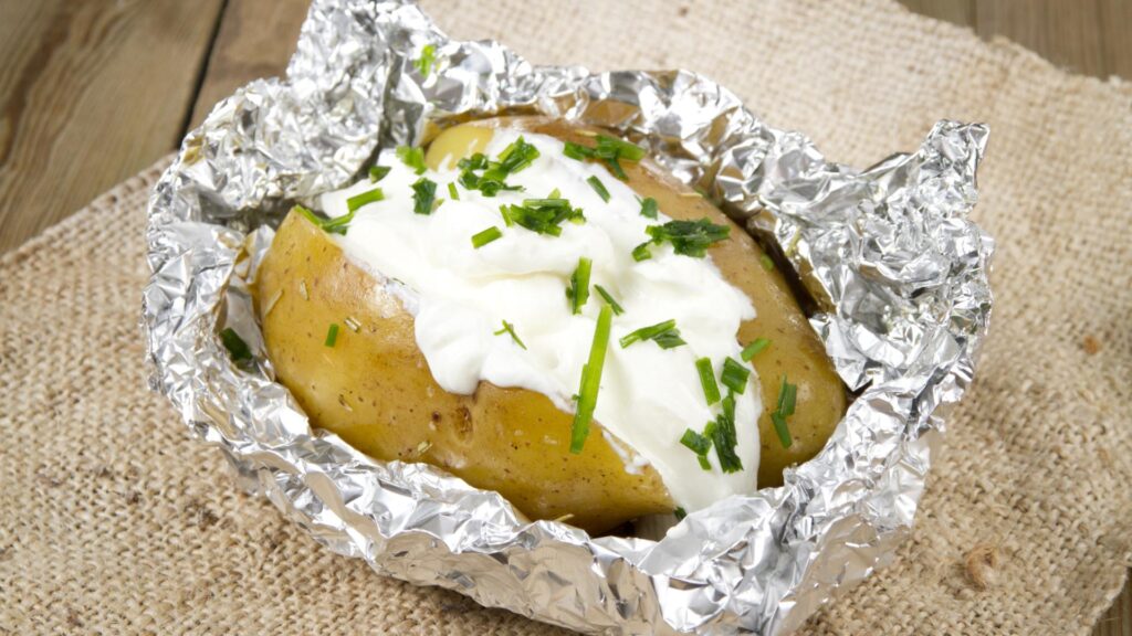 18. Podawaj ziemniaki z piekarnika w folii posypane dodatkowymi ziołami i ewentualnym dodatkiem (np