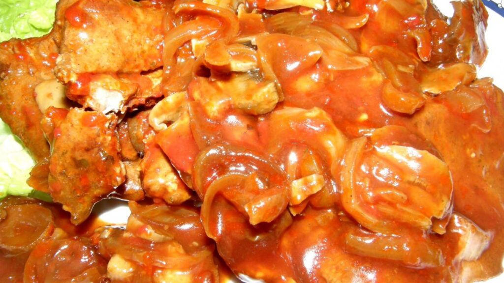 Karkówka w sosie pomidorowym z cebulą to prosty i smaczny sposób na przyrządzenie soczystego mięsa wieprzowego. Karkówka jest duszona w aromatycznym sosie z pomidorów i cebuli, co nadaje potrawie głęboki smak. Idealnie pasuje do ryżu lub ziemniaków, tworząc pyszny i zadowalający obiad.