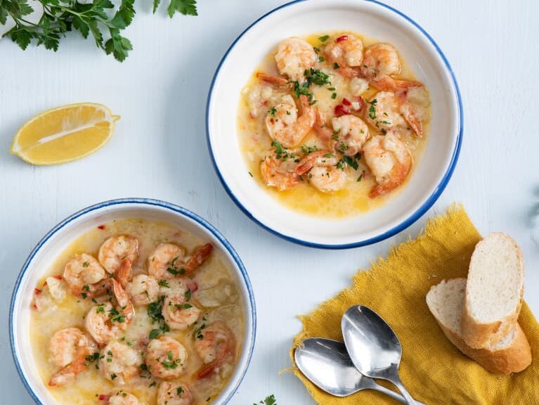 - Podawaj krewetki w sosie winno maślanym na gorąco, posypane świeżo posiekaną natką pietruszki.