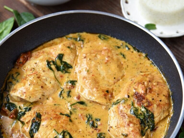 Kurczak z szpinakiem i suszonymi pomidorami to pyszne danie, które zachwyca prostotą przygotowania i wyjątkowym smakiem. Soczyste kawałki kurczaka podsmażone z czosnkiem, cebulą, szpinakiem i suszonymi pomidorami tworzą aromatyczną i zdrową potrawę, idealną zarówno na obiad, jak i kolację. Do tego dania doskonale pasują makaron, ryż lub pieczywo, co sprawia, że jest to danie uniwersalne i zadowoli nawet najbardziej wymagające podniebienia.