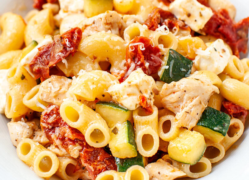 Makaron z kurczakiem, cukinią i suszonymi pomidorami