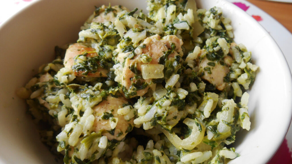 Ryż z kurczakiem i szpinakiem