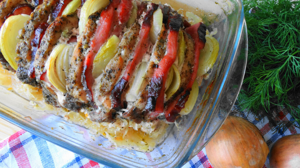 - Powtórz warstwy kapusty i schabu, aż wszystkie składniki zostaną wykorzystane.