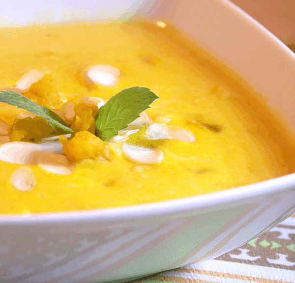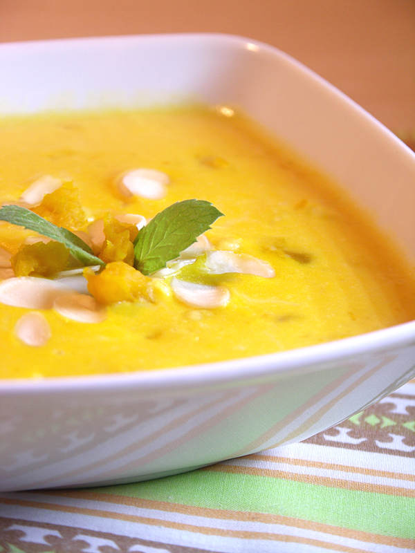- Podanie zupy z dyni na mleku z dodatkiem usmażonych zacierków.